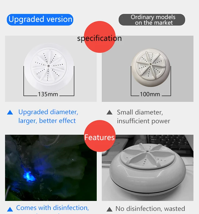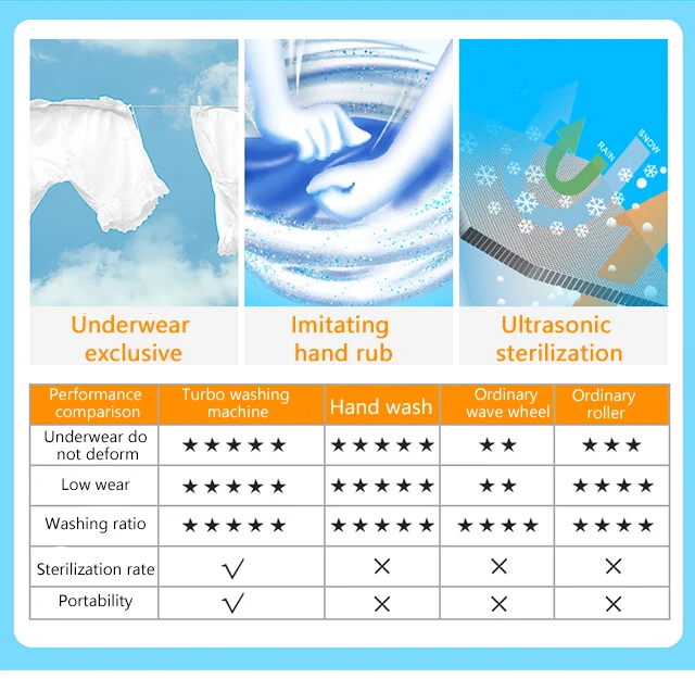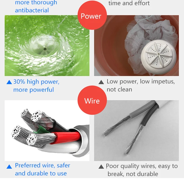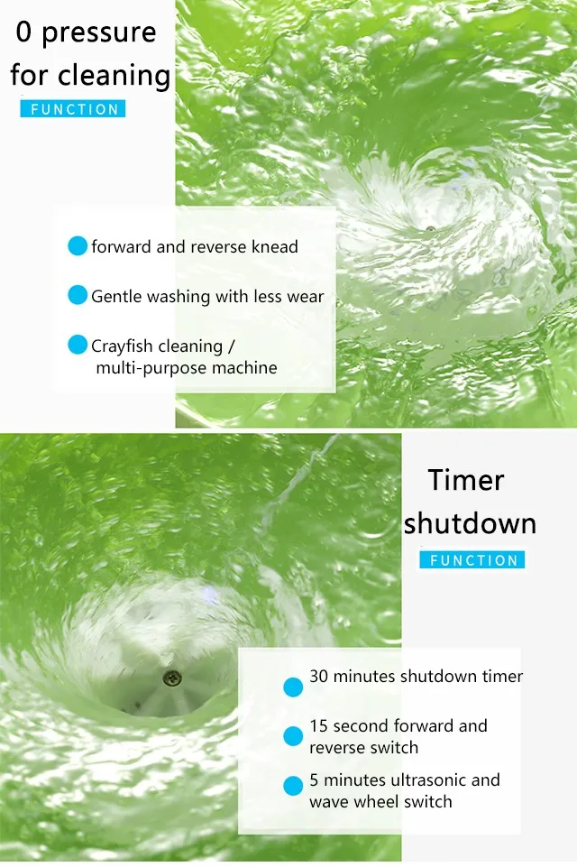 3. Multifunctionality: with high vibration, the mini washer is ideal for children's clothing, underwear, socks, towels and more. In addition to cleaning clothes, it is also great for cleaning jewelry, glasses, fruits, and more.